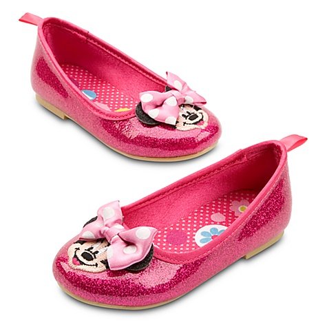 Disney Store Minnie Mouse Shoes: Pink Glitter Ballet Flats Size 11 Description:Minnie will make your little one's day sparkle! These Ballet Flat Minnie Mouse Shoes feature glittering uppers with a smiling Minnie topped with her distinctive polka dot bow. Keep in step with fashion thanks to this fun Minnie footwear!
